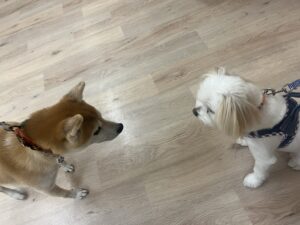 見つめあっているのは、もなかくんとぽんくん☆