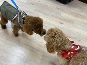今日は、MIXのまりんちゃんとダックスのルカくんが協力してくれました☆