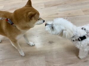 何してるの?とご挨拶しているのはシルクちゃんとルナちゃん!