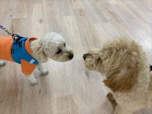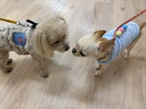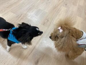 じぃーと見つめあっているのはレオくんとぽんずちゃん!