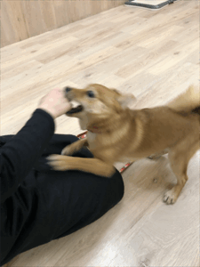 撫でようとするとすぐに興奮して甘噛みしちゃう
