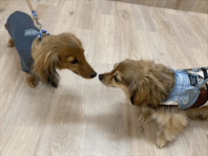 こんにちは~とご挨拶しているのはでこ丸くんとチロルちゃん♪