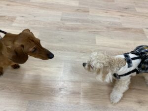 楽しくお話し中のりんちゃんとむぎくん