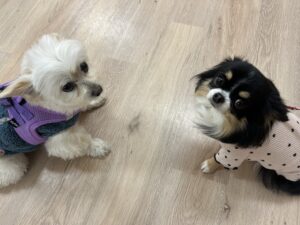 おはようと挨拶しているのは、もちくんとティアラちゃん☆