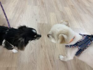 なにしているの?とお話し中の麦くんとらむねちゃん!