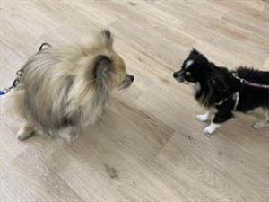 じぃーと見つめあっているのはレオくんとぽんくん!